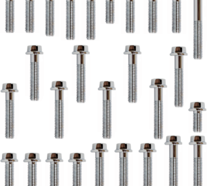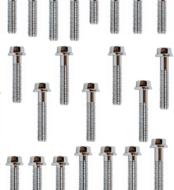 28 parafusos cromados da tampa lateral do motor lado esquerdo (lado estator) e lado direito (lado embreagem) e parafusos da tampa do pinhão