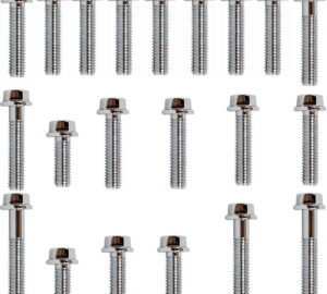 21 parafusos cromados da tampa lateral do motor lado esquerdo (lado estator) e lado direito (lado embreagem) e parafusos da tampa do pinhão