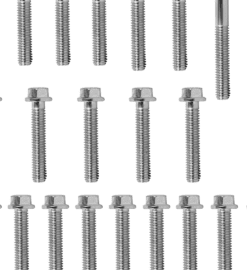 22 parafusos zincados da tampa lateral do motor lado esquerdo (lado estator) e lado direito (lado embreagem) e parafusos da tampa do pinhão